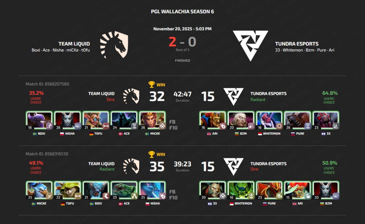 Tundra Esports без шансов проиграли Team Liquid. Bzm уже на протяжении долго времени отыгрывает не лучшим образом, зато Nisha показал отличный перфоманс на Leshrac.