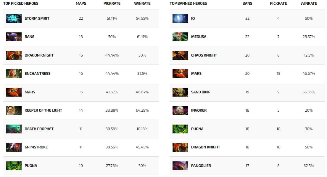 - Most Picked Hero: Storm Spirit – 22 maps.