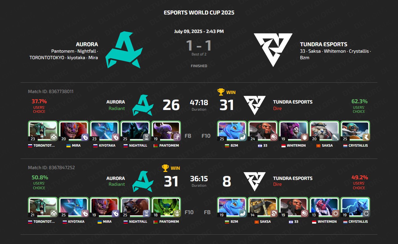 Das Match Tundra Esports gegen Aurora endete unentschieden. Es ist erwähnenswert, dass 33 seinen Signature-Build auf Axe entwickelt hat: Gestern zeigte er uns einen Kauf aus drei Ring of Protection, und heute ergänzte er ihn mit zwei Chainmail. Anscheinend bewertet er Rüstungsgegenstände so hoch, weil je mehr Rüstung, desto mehr Schaden pro Sekunde von Battle Hunger.