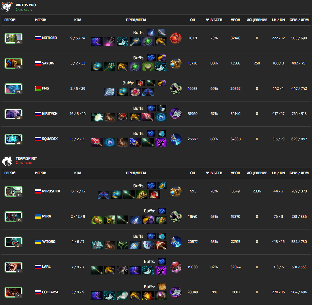 Первая карта получилась однокалиточной, Virtus.pro превосходили Team Spirit по всем параметрам, а итоговая статистика поражает.