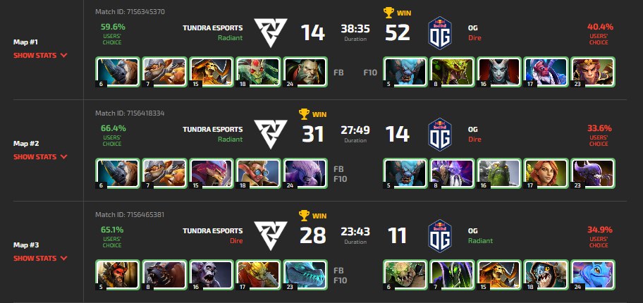 Решающая карта закончилась за 23 минуты. Ursa и Beastmaster от Tundra уничтожили свои линии и набрали слишком большое преимущество. Герои OG уже не могли ничего поделать, а саппорт Clinkz снова не сработал, но уже у второй команды.