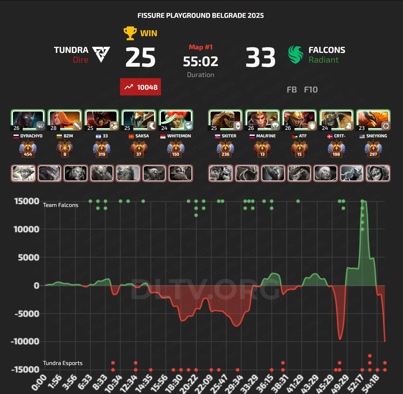 Tundra Esports вышли в гранд-финал FISSURE Playground Belgrade 2025, обыграв Team Falcons в финале верхней сетки. Теперь Tundra Esports ожидают своего завтрашнего противника, как и Team Falcons, которые попытаются пройти в гранд-финал через финал нижней.